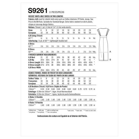 Simplicity 9261 Sewing Pattern Mimi G S9261 Knit Dress Etsy